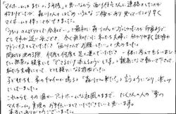 西川住宅販売で、御自宅を御購入されたり、あるいは新しい賃貸生活をスタートされたお客様に、御意見をいただきました。良い意見も至らなかった点のご指摘もありますが、そのままご紹介させていただきます。